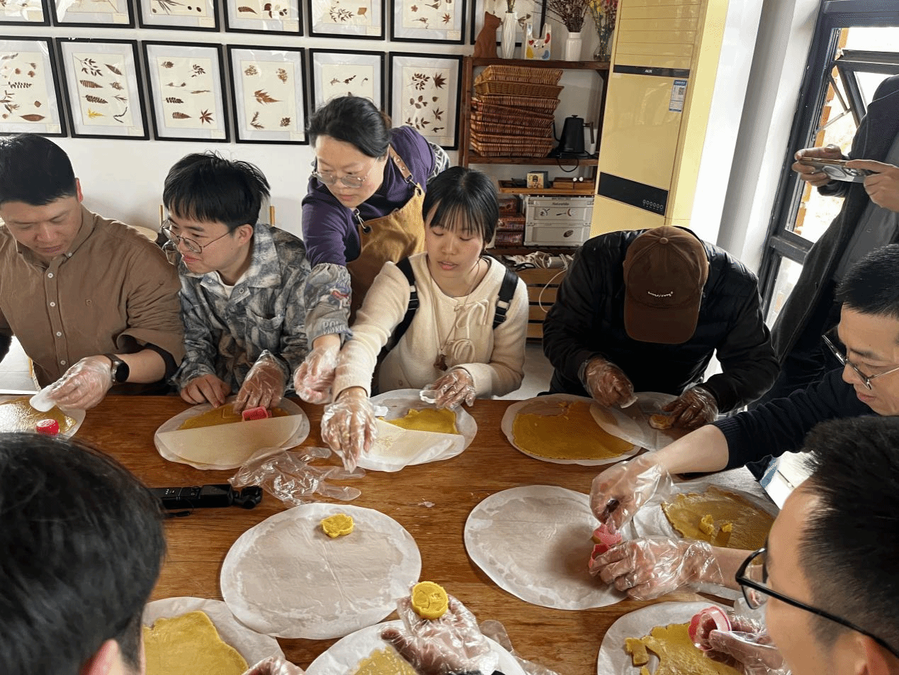 在景区的烘焙体验区,一场趣味盎然的饼干烘焙活动欢乐上演。在专业烘焙师的指导下,师生们纷纷化身“甜点大师”,从揉面、擀皮到压模、烘焙,每一个环节都一丝不苟。大家充分发挥创意,制作出形态各异的饼干,在协作中画好“同心圆”,凝聚起团结奋进的合力。随着烤箱“叮”声响起,浓郁的奶香弥漫全场,大家品尝着自己的劳动成果,脸上洋溢着满足与喜悦的笑容。