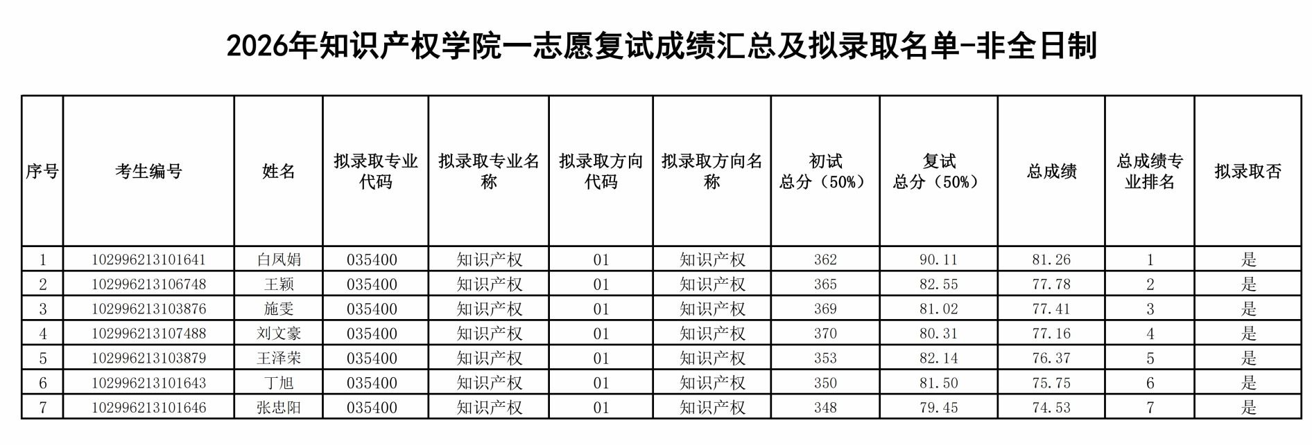 下一条:2026年知识产权学院一志愿复试成绩汇总及拟录取名单(全日制)
