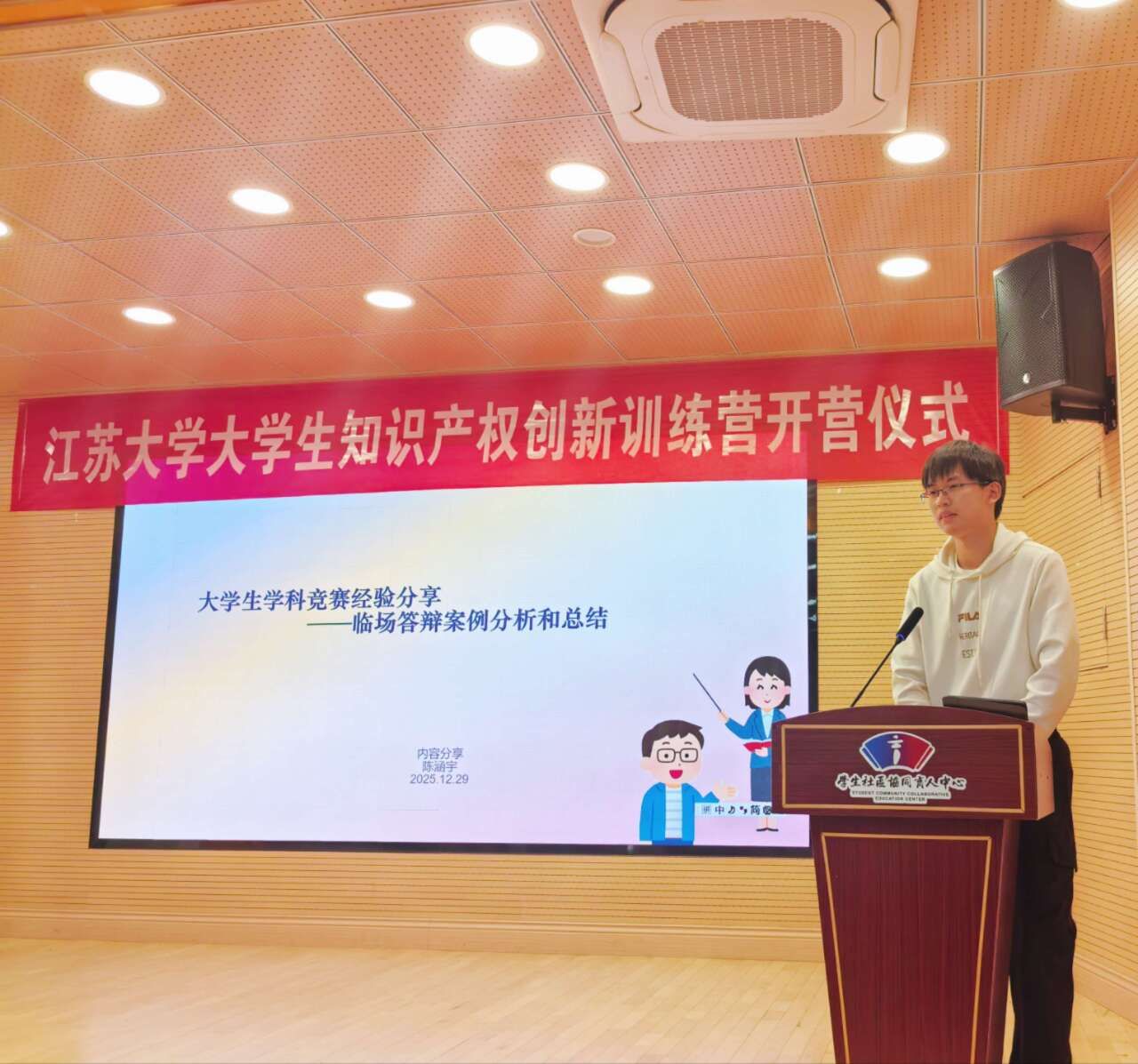 对高校而言,大学生学科竞赛是创新能力培养的“练兵场”,既推动课堂理论转化为实际解决方案,又促进学生突破知识边界、提升综合能力。2025年12月29日-30日,大学生知识产权创新训练营分别邀请了4位知识产权2301班学子们分享个人学科竞赛参赛经验,助力同学们不断提升创新能力。